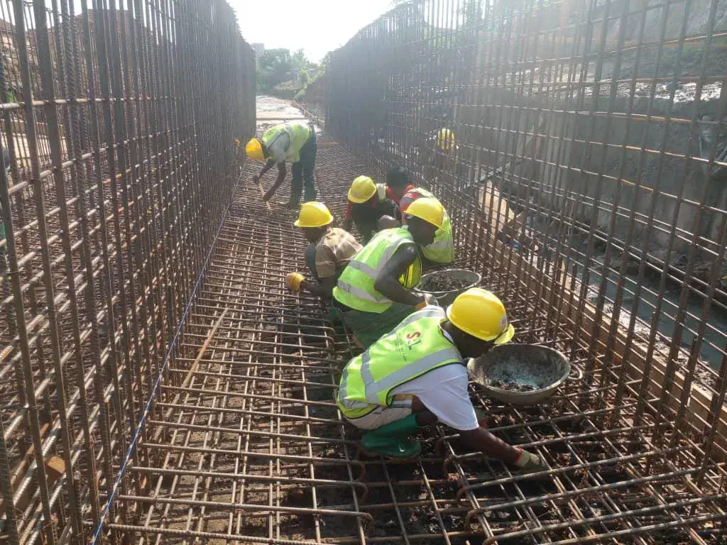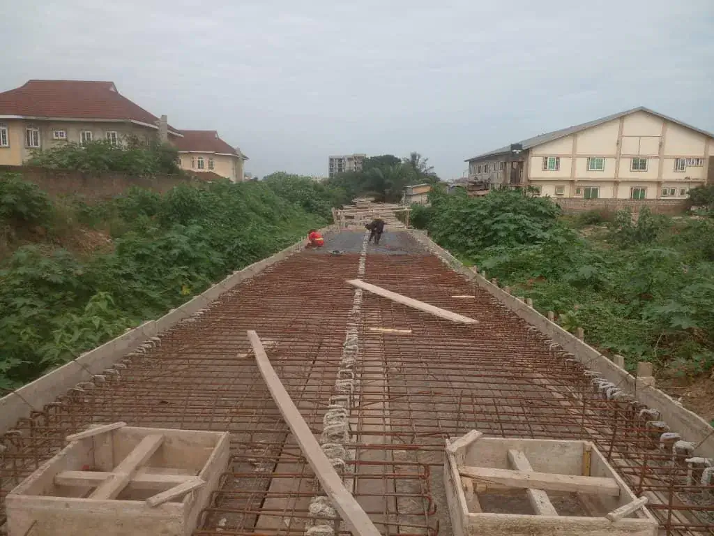 Development of a 2.5m by 2.5m reinforced concrete storm drainage channel in Madina Estate designed to enhance stormwater management, reduce flooding risks, and improve drainage capacity within the residential community.
